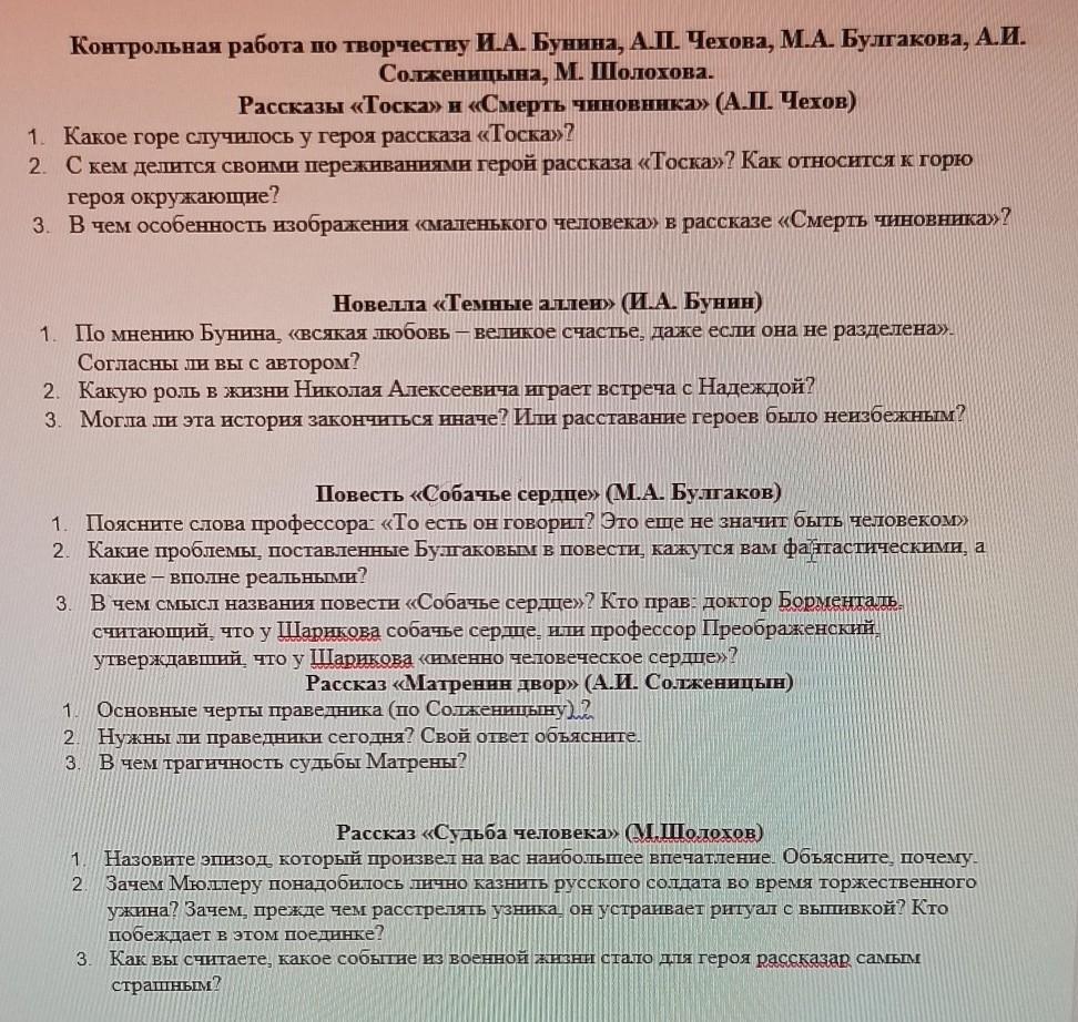 По творчеству И.А.Бунина,А.П.Чехова,М.АБулгакова,А.И.Солженицына,М.Шолохова.