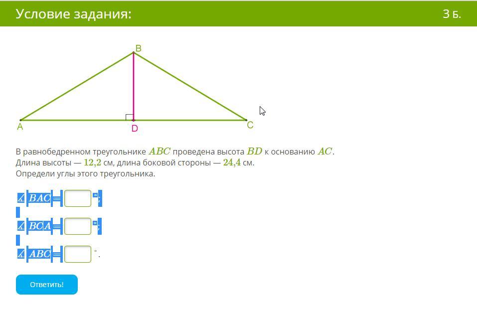 Длина высоты — 12,2 см, длина боковой стороны — 24,4 см.