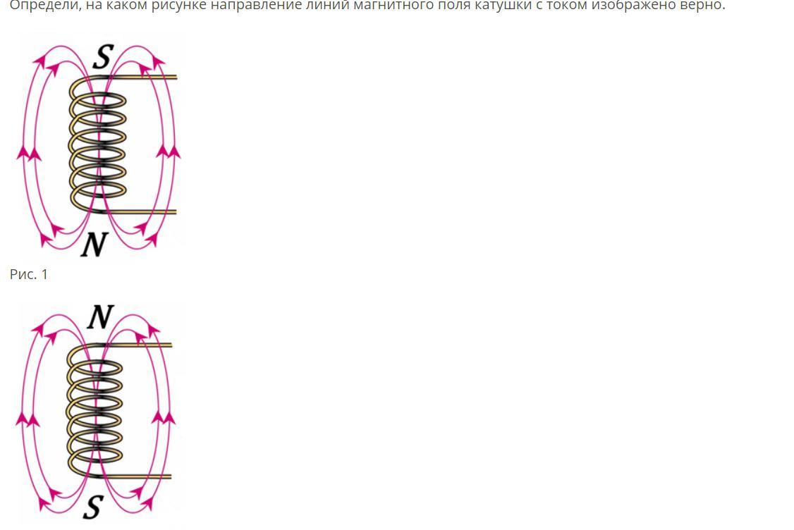 Направление линий магнитного поля изображено верно на рисунке 1 .