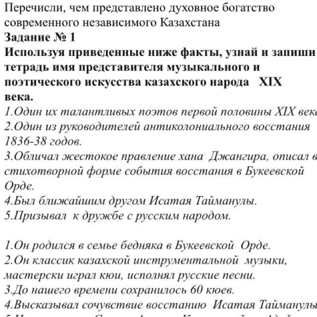имена представителей музкального и поэтического исскуства казахского народа 19 века