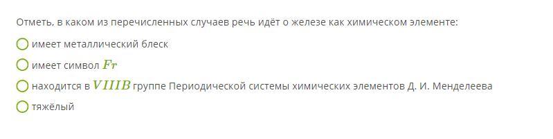 Отметь, в каком из перечисленных случаев речь идёт о железе как химическом элементе: