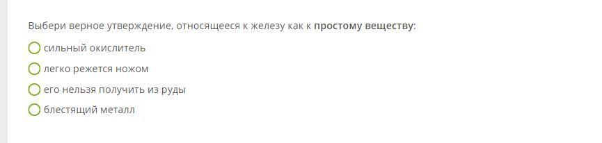Выбери верное утверждение, относящееся к железу как к простому веществу: