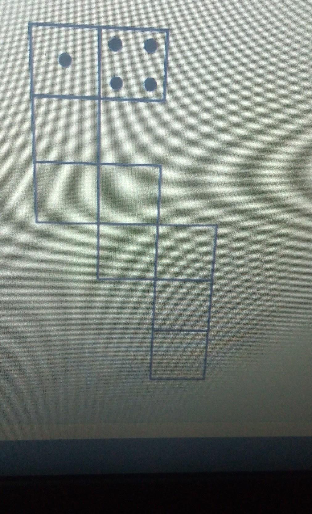 Игральный кубик прокатили по столу. На рисунке изображён след кубика. Отметьте на рисунке место, в котором грань с двумя точками соприкасалась со столом. Считайте, что сумма чисел на противоположных сторонах кубика равна 7.