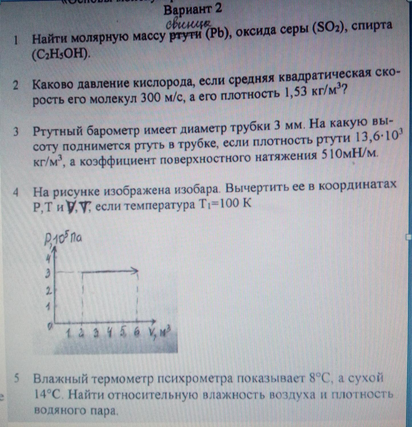 Нужны ответы для контрольной работы на тему "Основы молекулярно-кинетической теории"