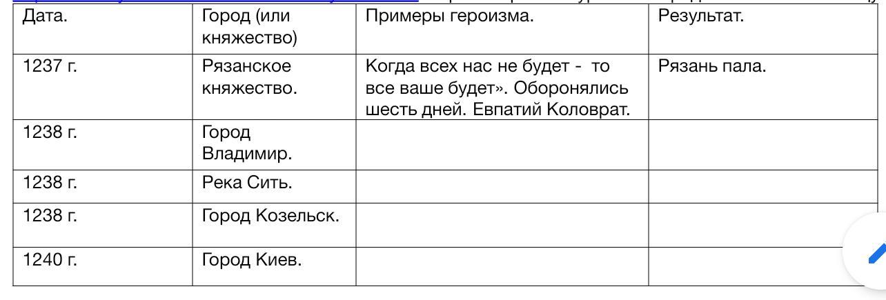 Таблица по истории