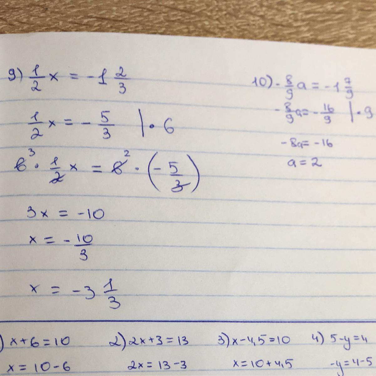 6)1/2x=4. |•2
