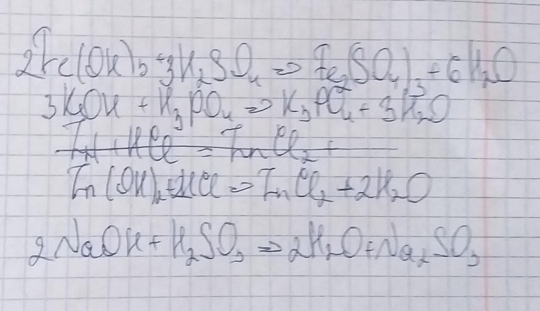 Запишите уравнения реакции нейтрализации, используя схемы: