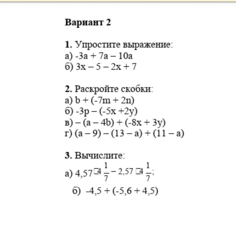 б)3x-5-2x+7=3x-x-5+7=x+2