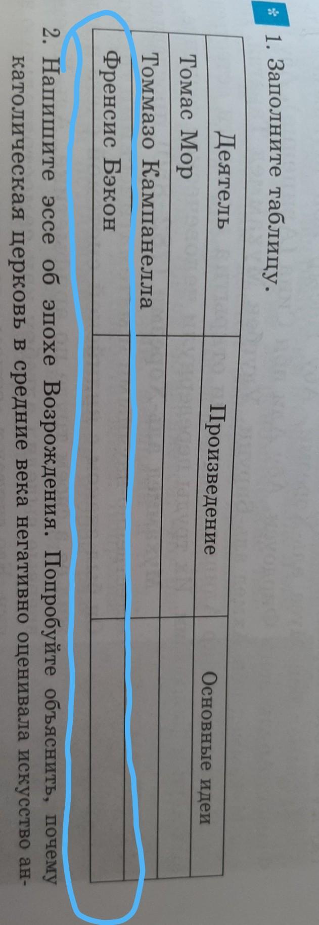 Заполните таблицу про Френсиса Бэкона​