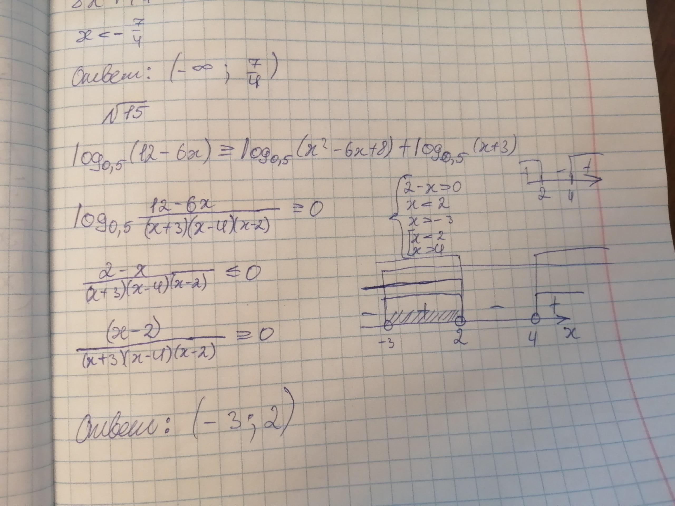 log₀,₅(12-6x)≥log₀,₅(x²-6x+8)+₀,₅(x+3)