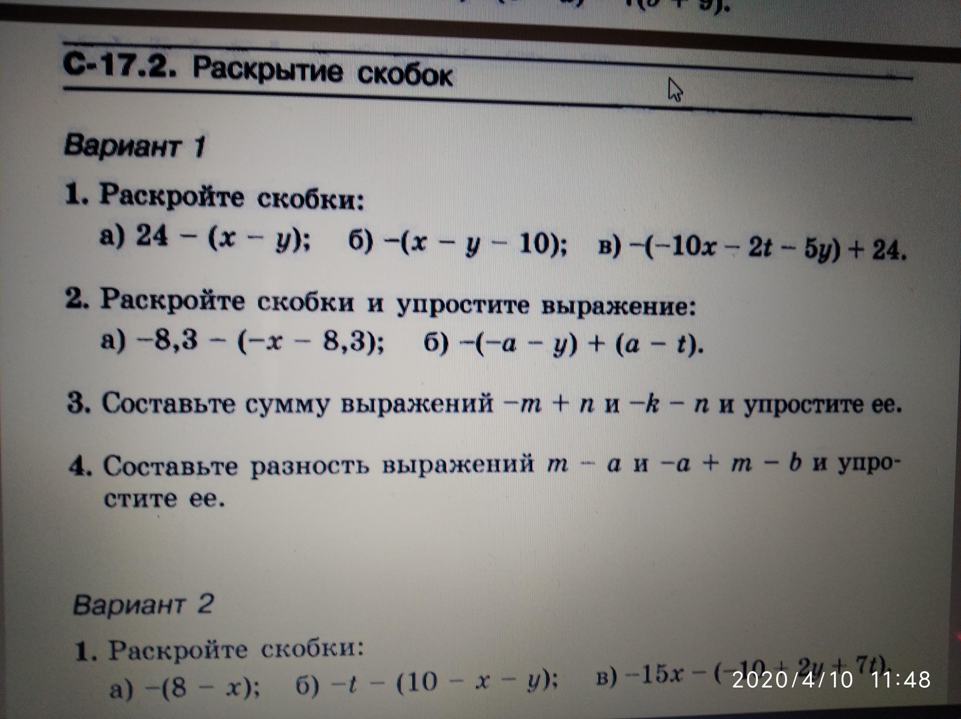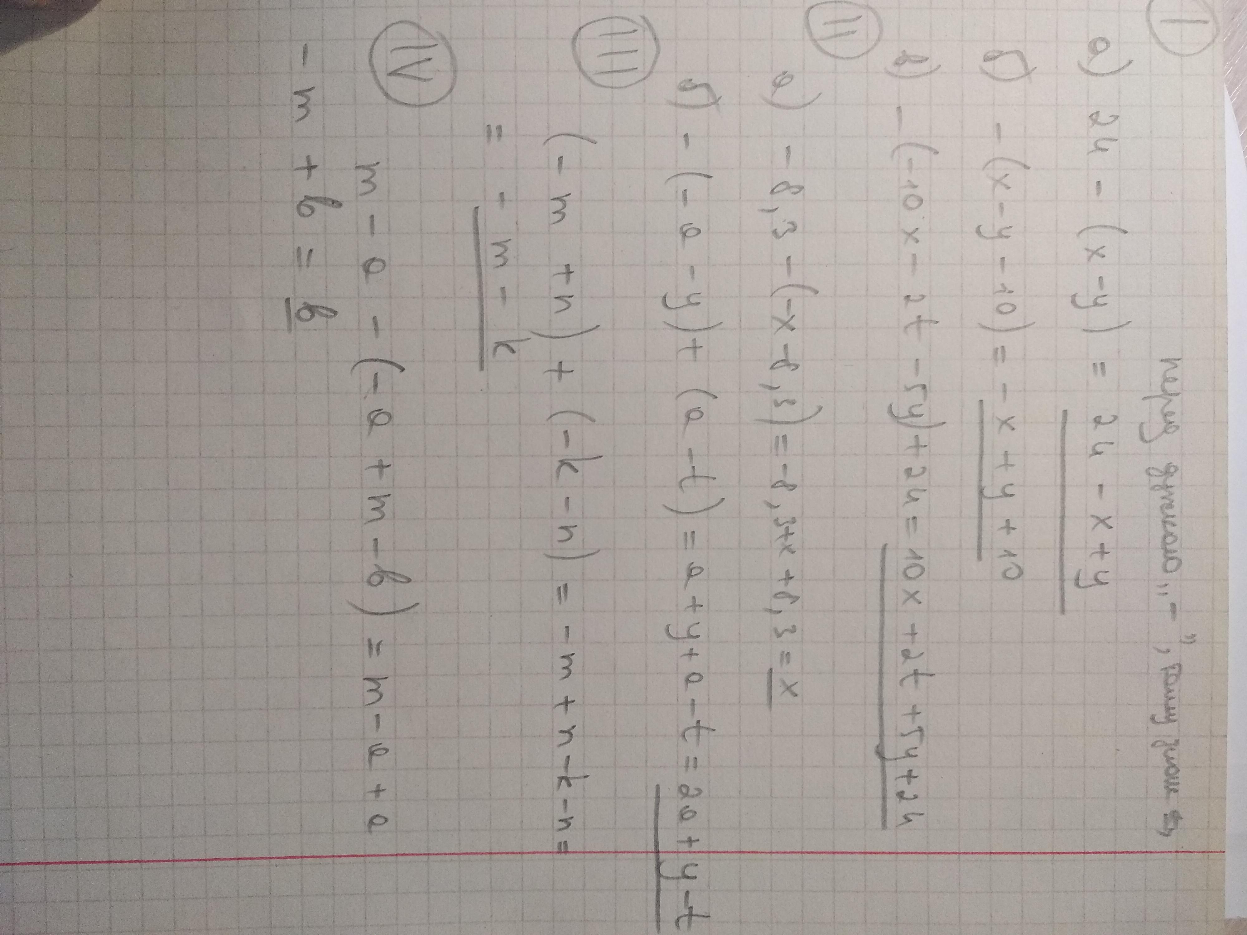 Для того,щоб зробити дані завдання, варто пам'ятати наступні правила: якщо перед дужкою стоїть мінус, то знаки виразів усередині дужки змінюються на протилежні; якщо перед дужкою стоїть плюс, то знаки лишаються попередніми.