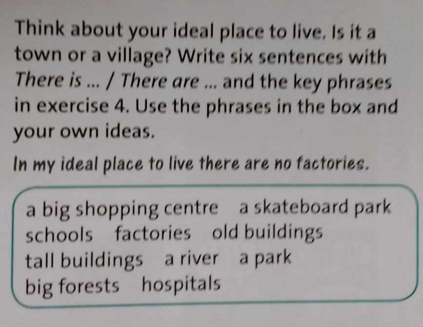 My Ideal place to live it's a town. There are big forests near the town. There are tall buildings and big shopping centres. There is skateboard park and big green park. There are any schools and factories. There is a beautiful, big river.
