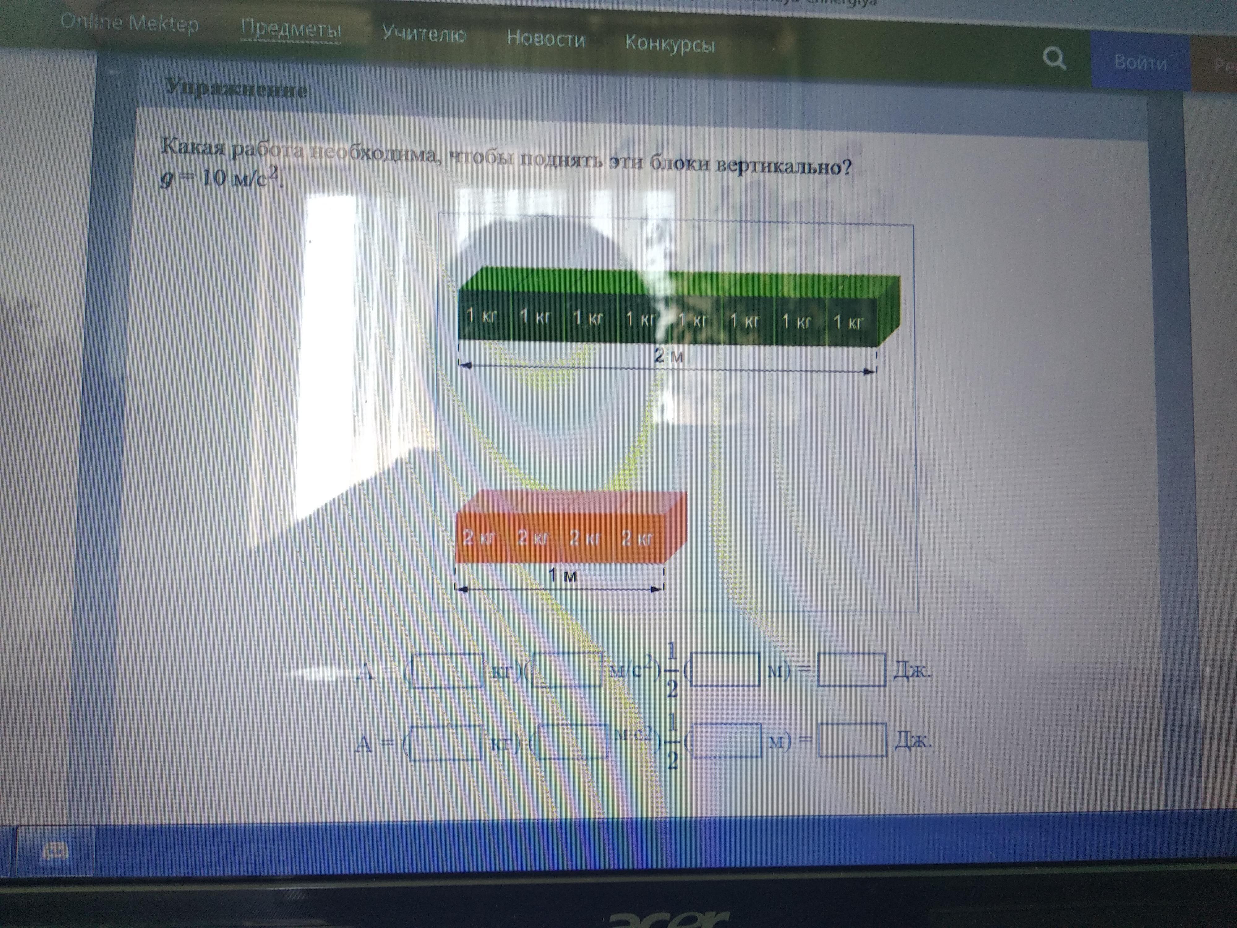 Какая работа необходима, чтобы поднять чтобы поднять эти блоки вертикально? g=10 м/с^2