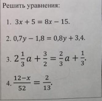 1) 3х + 5 = 8х - 15