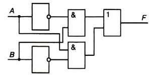 3) A = 1, B = 0 -> F = 1 т.к. (0 и 0) или (1 и 1) = 1