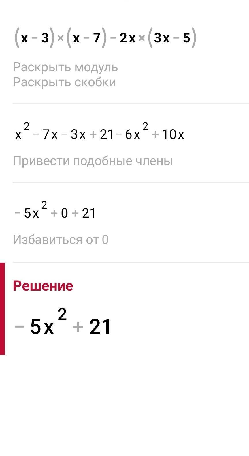 а) (x – 3) (x – 7) – 2x (3x – 5); в) 2 (m + 1)2 – 4m.