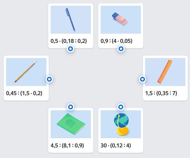Соедини выражения в цепочку по правилу: «Значение каждого выражения является первым числом в записи следующего выражения». Не забудь замкнуть цепочку!