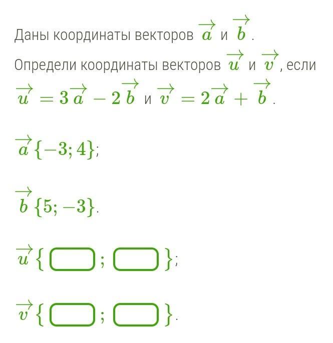Определи координаты векторов u→ и v→, если u→=3a→−2b→ и v→=2a→+b→.