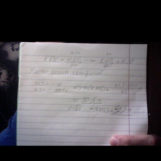 На 14г гидроксида калия подействовали раствором, содержащим 31,5 г азотной кислоты. Какая масса соли образовалась?