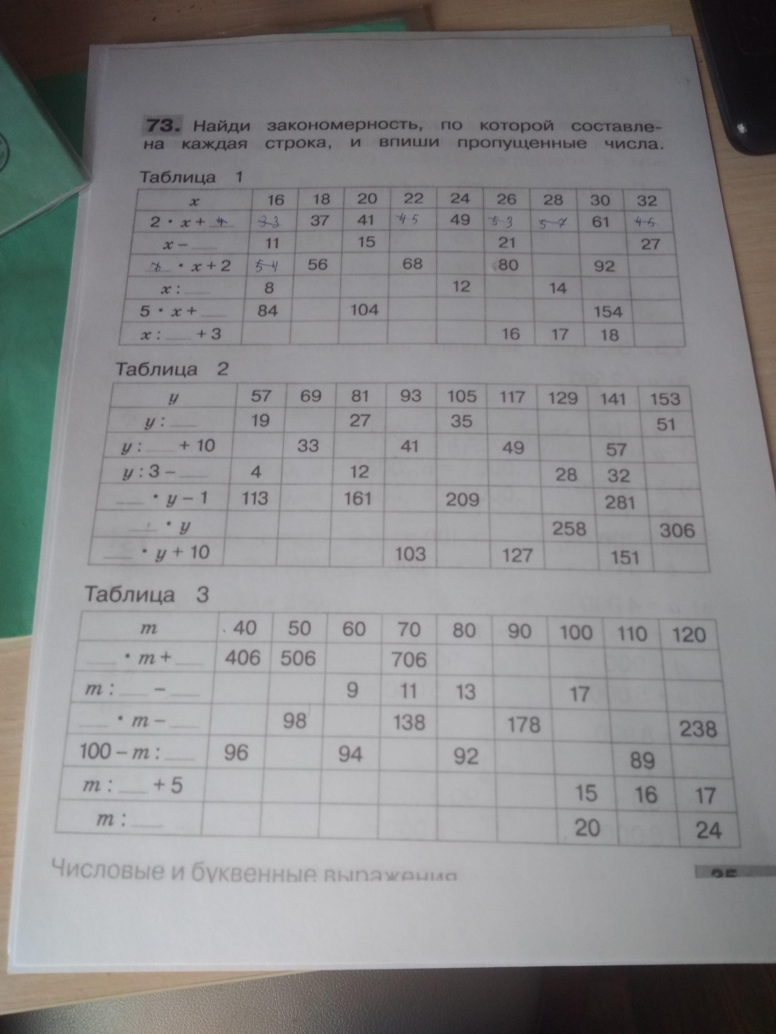 Найди закономерность по которой составлена каждая строка, и впиши пропущенные числа: