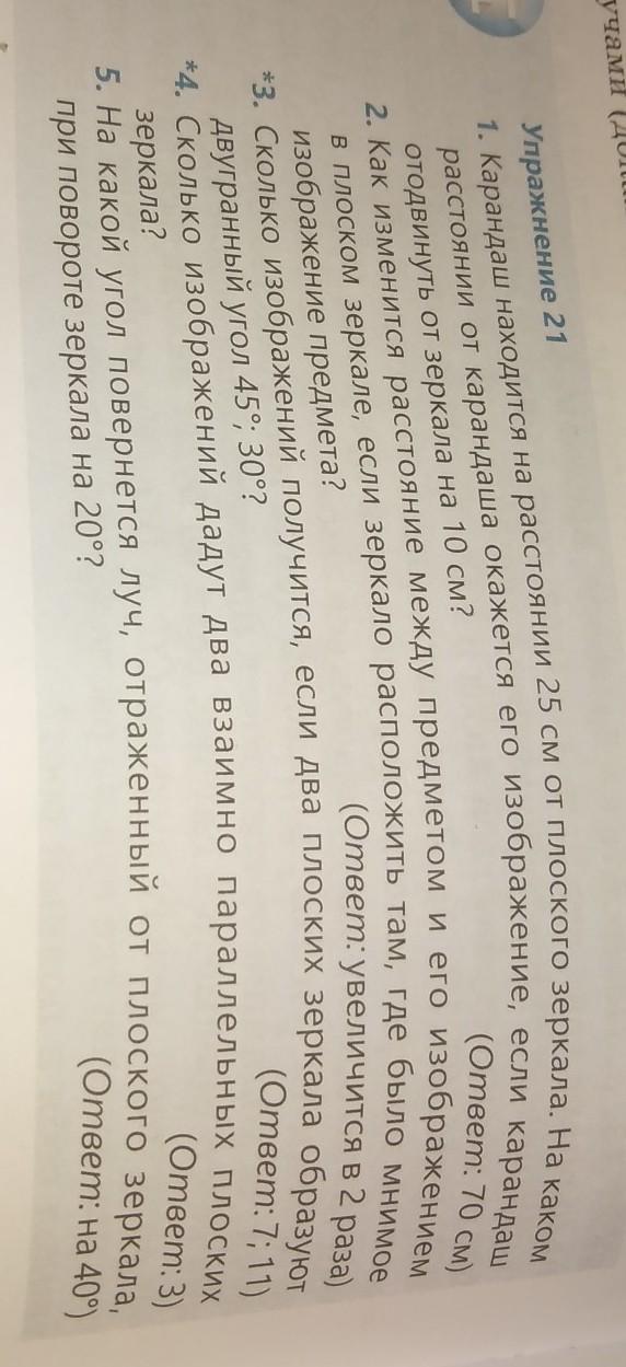 5.На какой угол повернется луч отраженный от плоского зеркала при повороте зеркала на 20 градусов (ответ на 40 градусов )