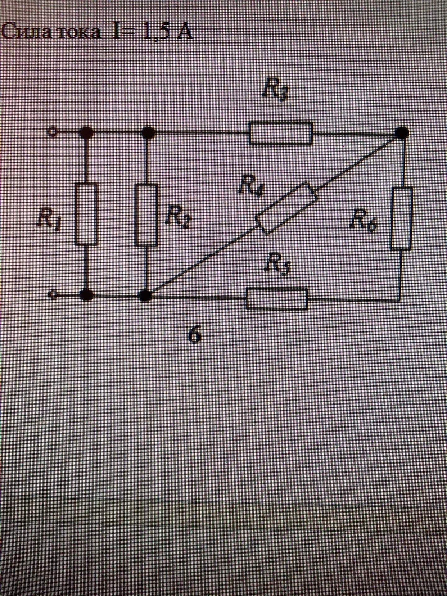 R1=4 Ом;R2=3 Ом;R3=3 Ом;R4=6 Ом;R5=2 Ом;R6=4 Ом.