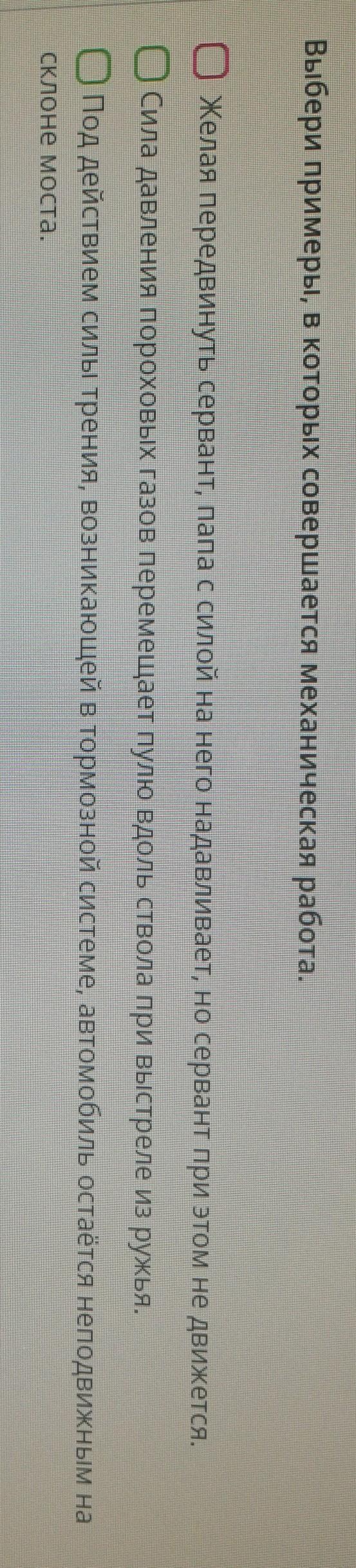 Механическая работа совершается только тогда, когда на тело действует сила и тело перемещается под действием этой силы.