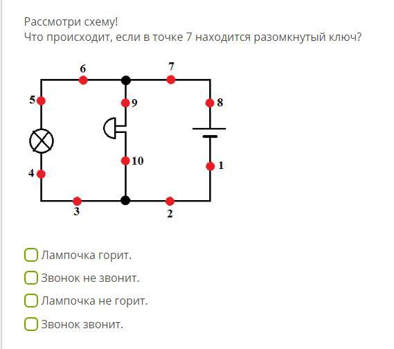 Что происходит, если в точке 7 находится разомкнутый ключ?