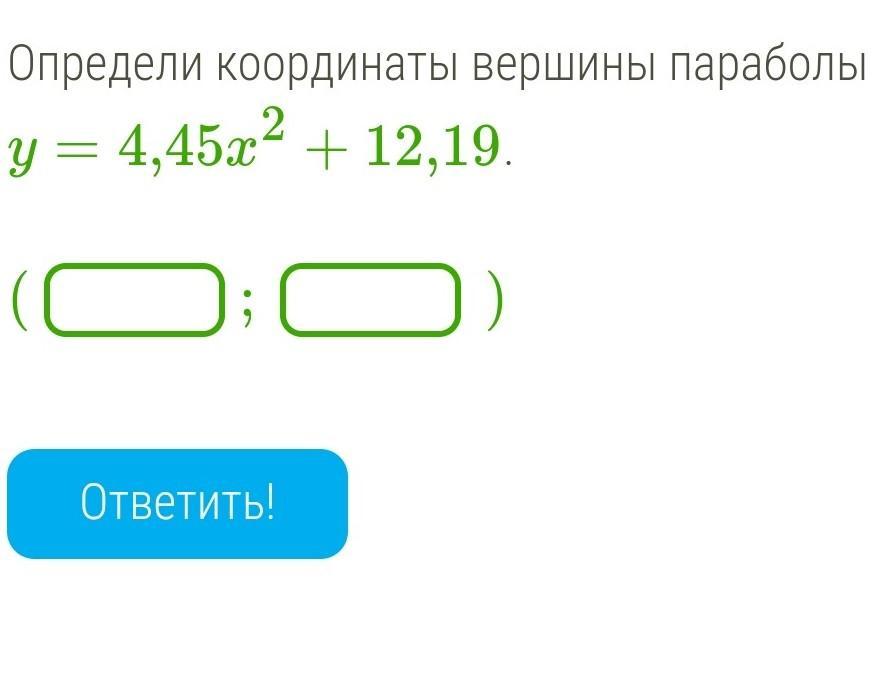 Итог:Вершина параболы имеет следующие координаты (0 ; 12.19)