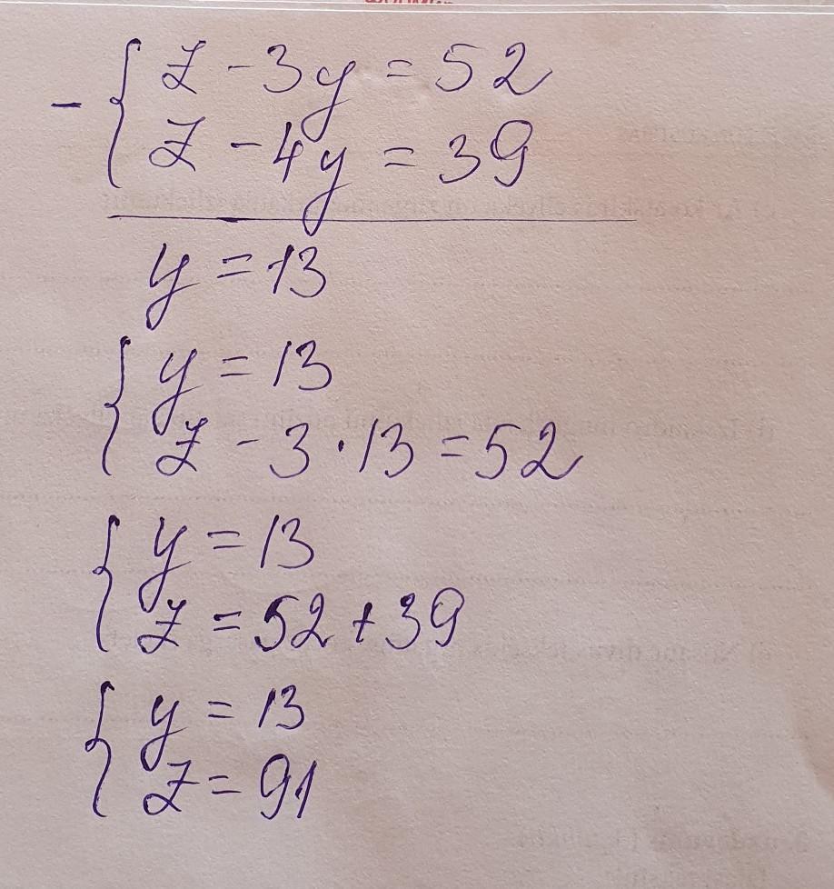 у = 13, т.к. мы от перврго уравнения в системе отнимаем второе уравнение системы.