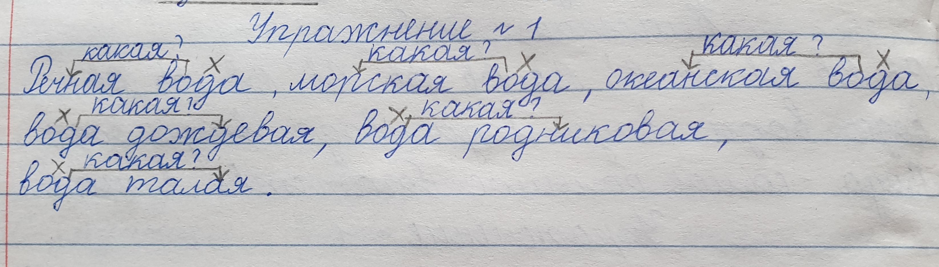 Ответ: главное слово будет Вода От него задаём вопрос,вода (какая?) морская, речная,океанская и т.д.
