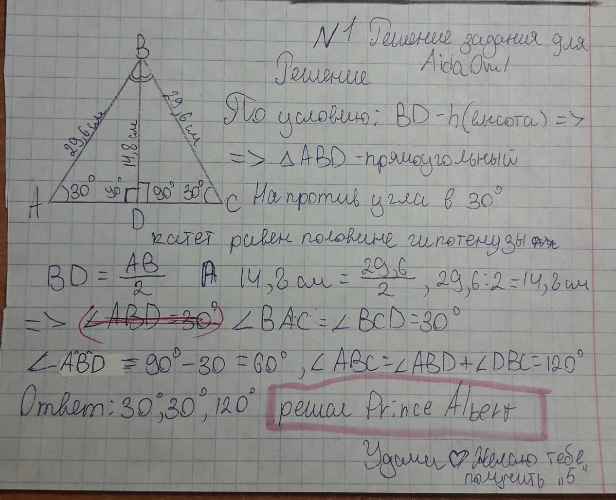 Длина высоты — 14,8 см, длина боковой стороны — 29,6 см.
