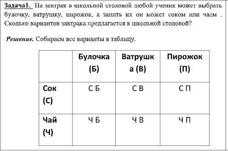 На завтрак в школьной столовой любой ученик может выбрать булочку, ватрушку, пирожок, а запить их он может соком или чаем . Сколько вариантов завтрака предлагается в школьной столовой? 10 баллов. Дистаннционка