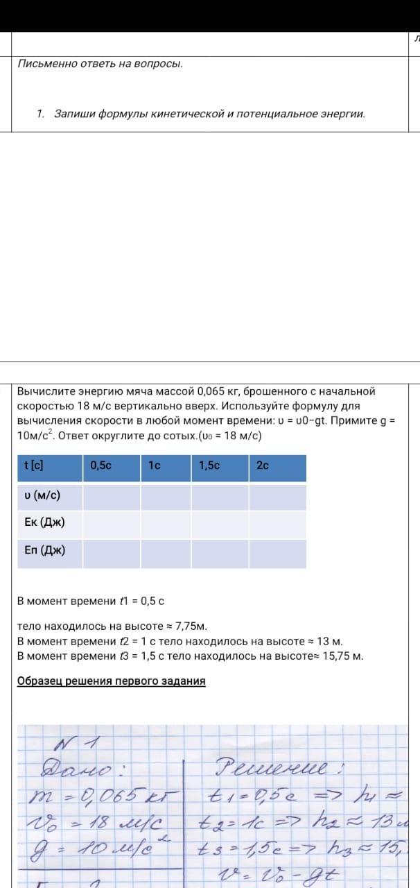 вычислите энергию мяча массой 0,065 кг, брошенного с начальной скоростью 18 м/с вертикально вверх. Используйте формулу для вычисления скорости в любой момент времени