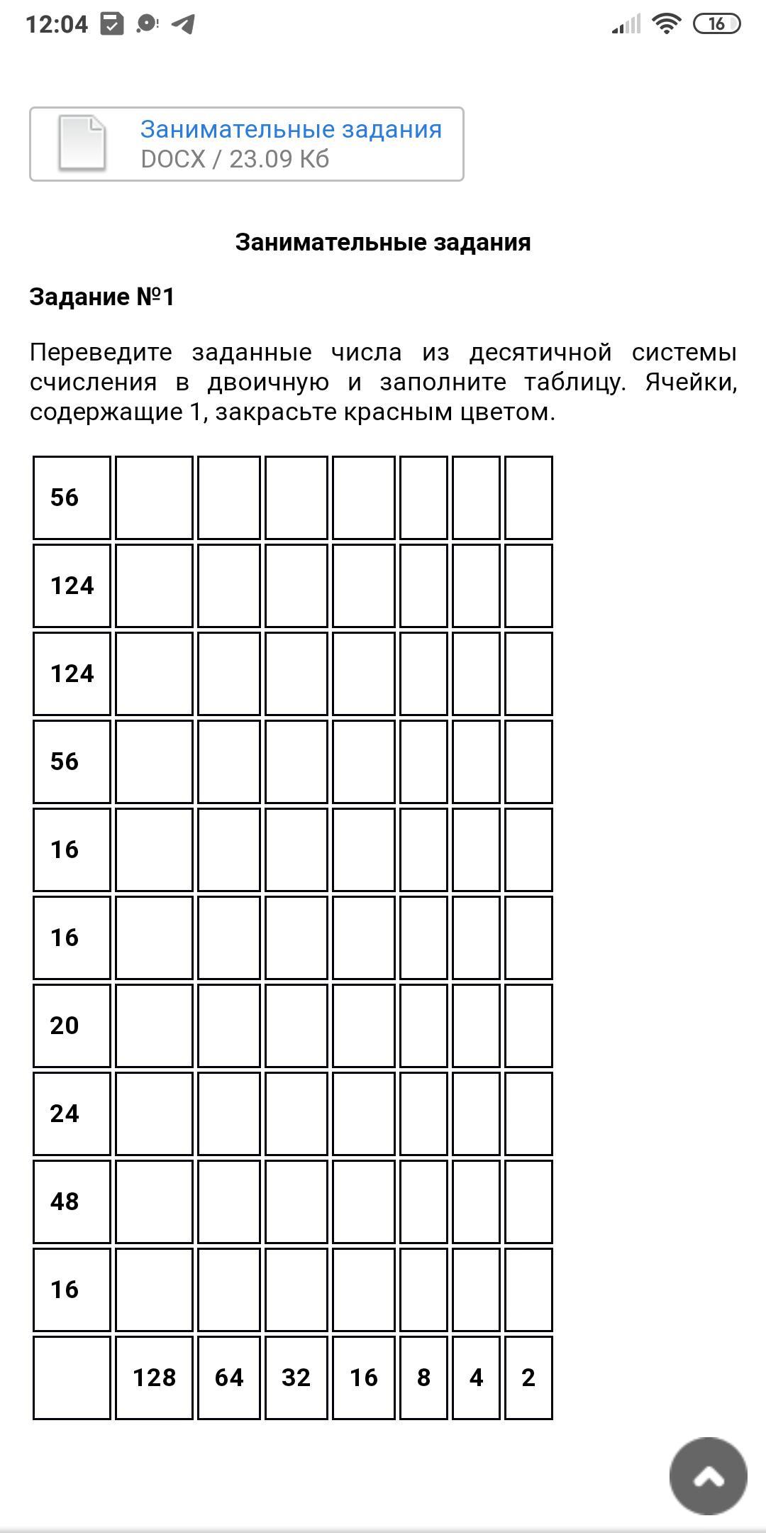 Как переводить числа из десятичной системы в двоичную знаю. Просто не понимаю как заполнять таблицу, что нужно закрашивать.