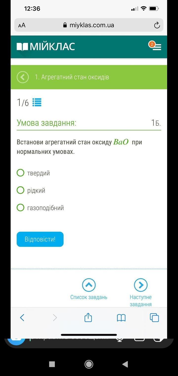 Встанови агрегатний стан оксиду BaO при нормальних умовах.