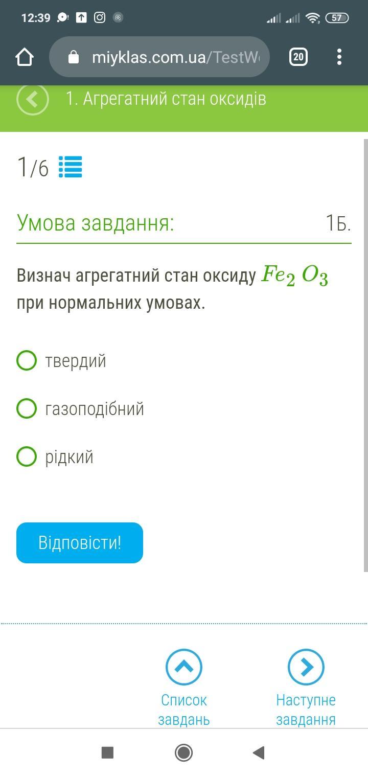 Визнач агрегатний стан оксиду Fe2O3 при нормальних умовах.