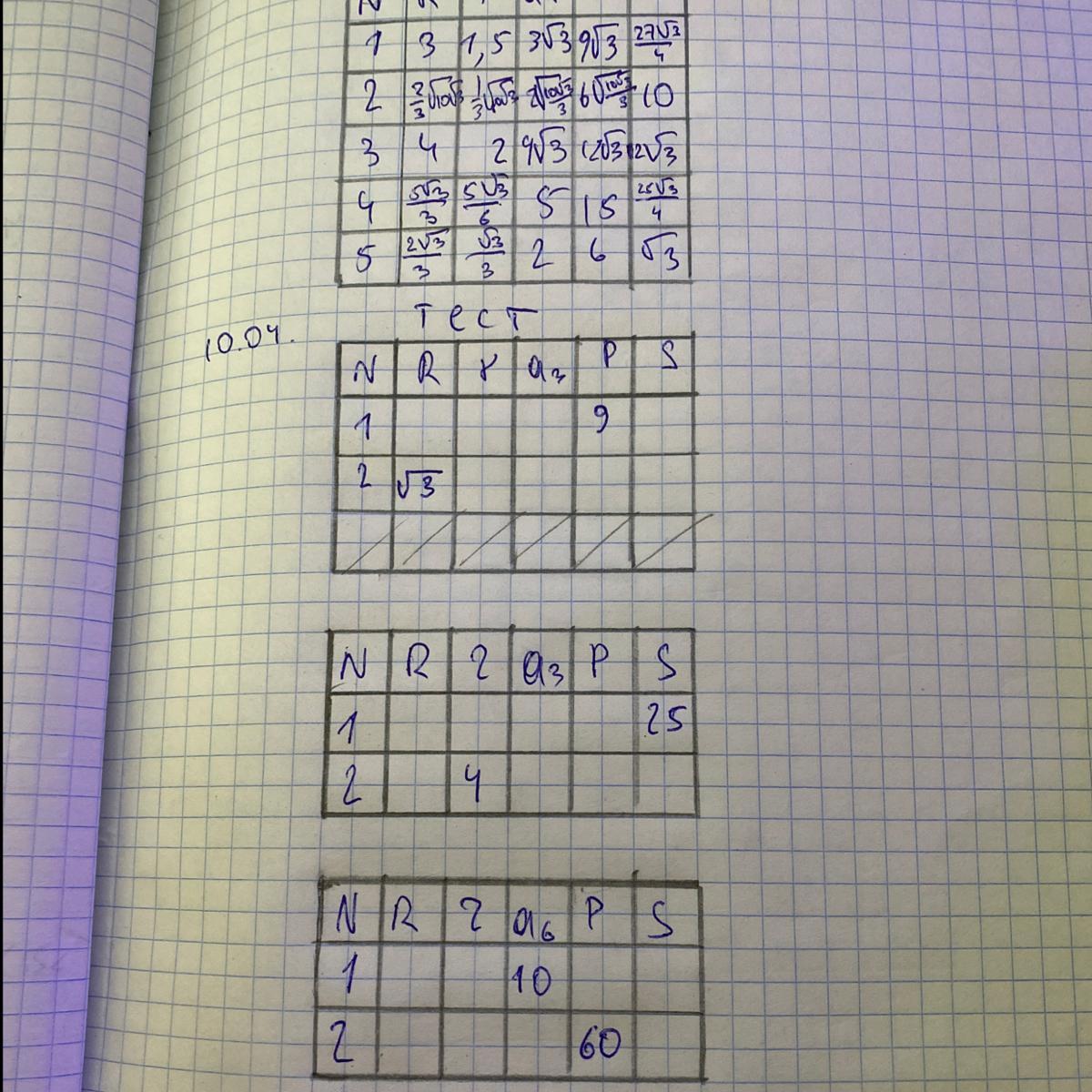 Последние три таблички, помогите! Нахождение элементов правильного н угольника