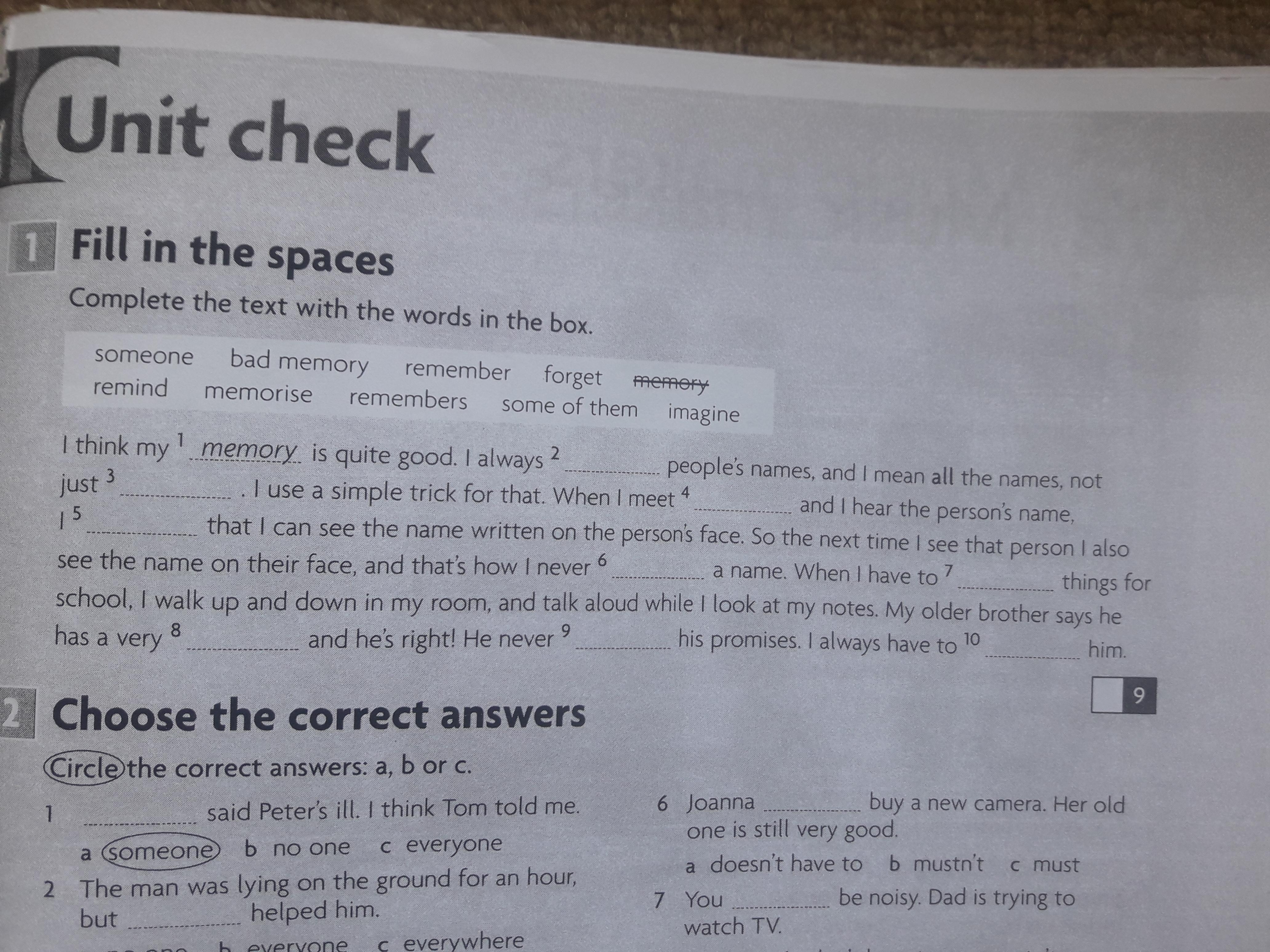 Ответ: remember, some of them, someone, imagine, forget, memorise, bad memory, remembers, remind