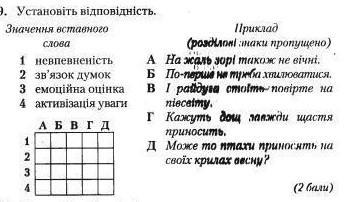 установіть відповідність 1) невпевненість 2) зв'язок думок 3) активізація уваги