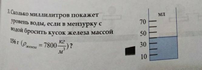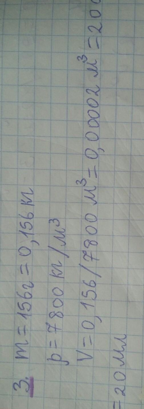 V= 0,156/7800 м3 = 0,00002 м3 =20 см = 20 мл