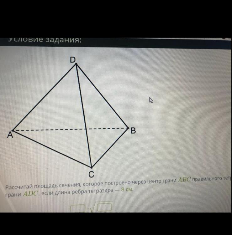 грани ADC, если длина ребра тетраэдра — 8 см,