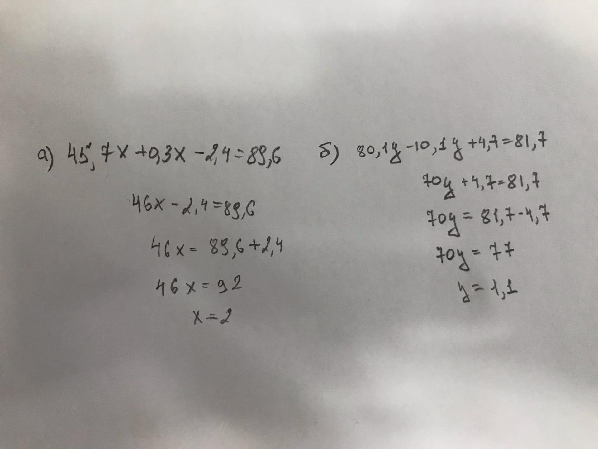 а) 45,7х + 0,3х – 2,4 = 89,6;