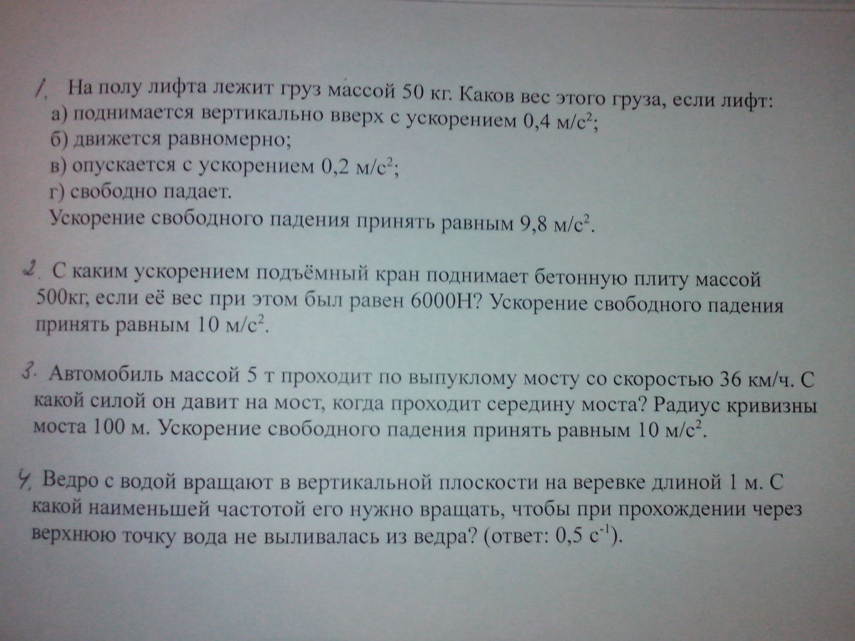 1) а ) m(g+a)=50*(10+0,4)=70 Н