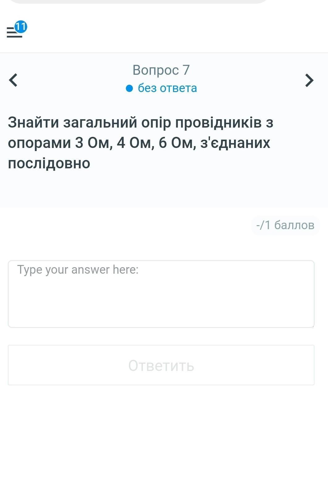Знайти загальний опір провідників з опорами 3 Ом , 4 Ом ,6 Ом , з'єднаних послідовно