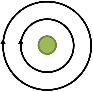 Направление линий магнитного поля прямого проводника с током задано в виде стрелок (смотри рисунок). Определи направление тока в проводнике.