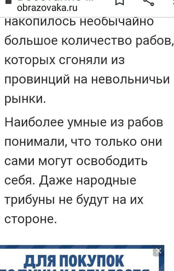 Нужно ответить на вопрос по истории про тему "Восстание Спартака"