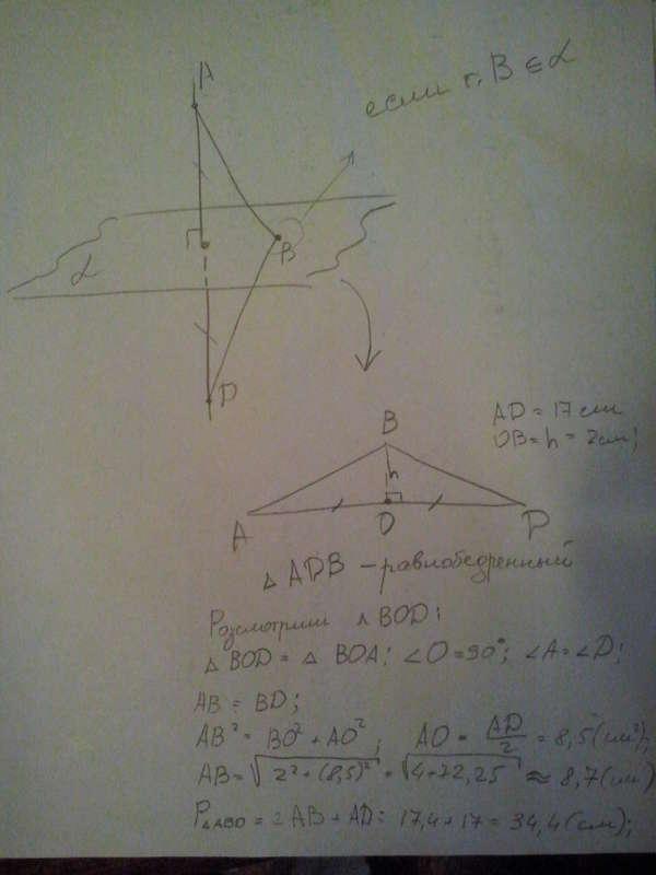 Определи вид и периметр треугольника ABD, если AD= 15 см, а OB= 7 см (ответ округли до одной десятой).