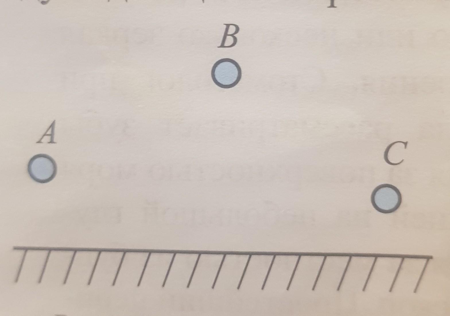 Постройте изображение трех светящихся точек A, B, и Св плоском зеркале. Определите графически область видения изображения в зеркале для каждой точки и для всех трех точек.