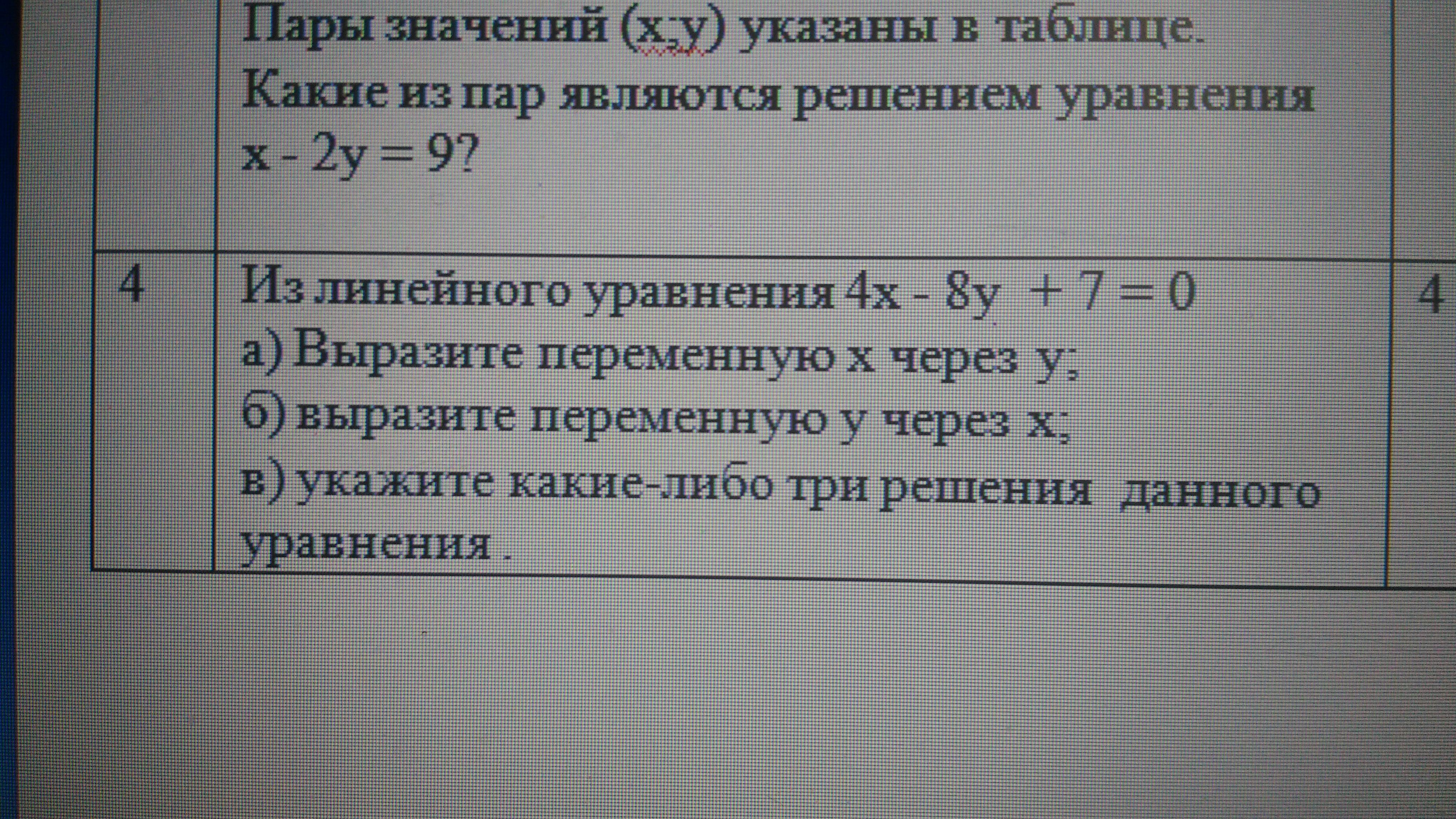Из линейного уравнения 4х-8у+7=0 выразите: